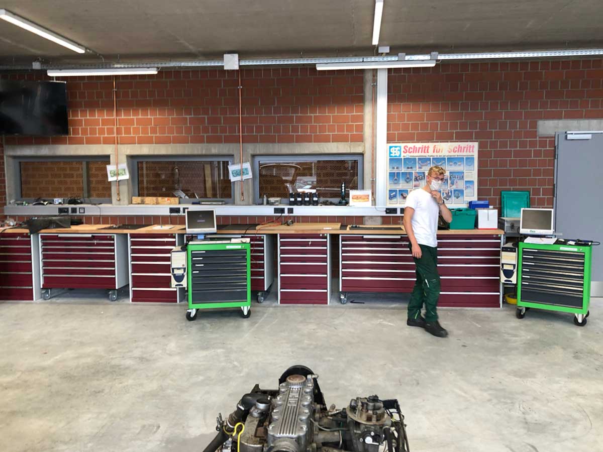 Our school is not involved in production or repair processes. Nevertheless, the workbenches are used in each lesson, depending on the different teaching unit. The versatility is particularly important. The maintenance and repair work in the individual trades can be carried out effortlessly on the robust workbenches. Due to the colour coded design, it is immediately clear to each student in which classroom the respective mobile cabinet must be returned.
