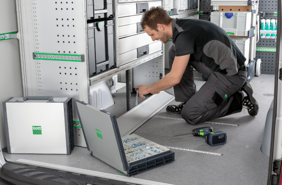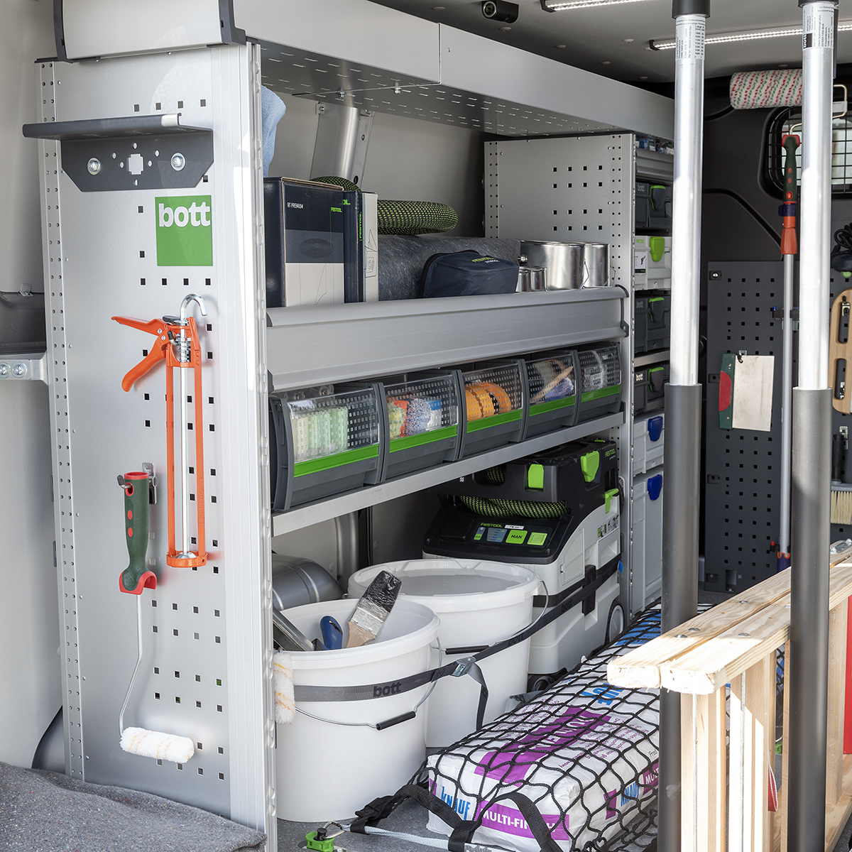 Our bott vario3 van racking modules transform your van into an organised workspace where every tool has its place, and the modular design ensures maximum efficiency on every job.